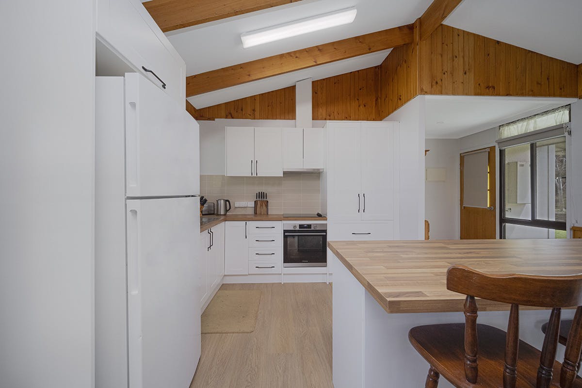 Inside, the home offers a warm and welcoming feel with new flooring and double day/night blinds throughout. The brand-new kitchen has been thoughtfully finished with white cabinetry, decorative black handles, timber-look benchtops. Appliance upgrades include an electric ceramic cooktop, underbench oven and dishwasher. The adjoining dining and living areas enjoy excellent natural light and year-round comfort with both a wood heater and reverse cycle air conditioner, while two of the bedrooms also feature split systems for added convenience.