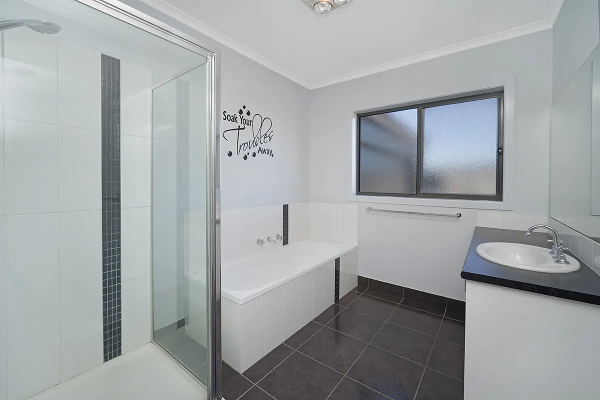 The family bathroom is well appointed with a bath, shower and vanity, complemented by a separate toilet. The laundry offers good storage and internal access to the attached double garage with electric roller door, along with convenient rear access to the backyard.