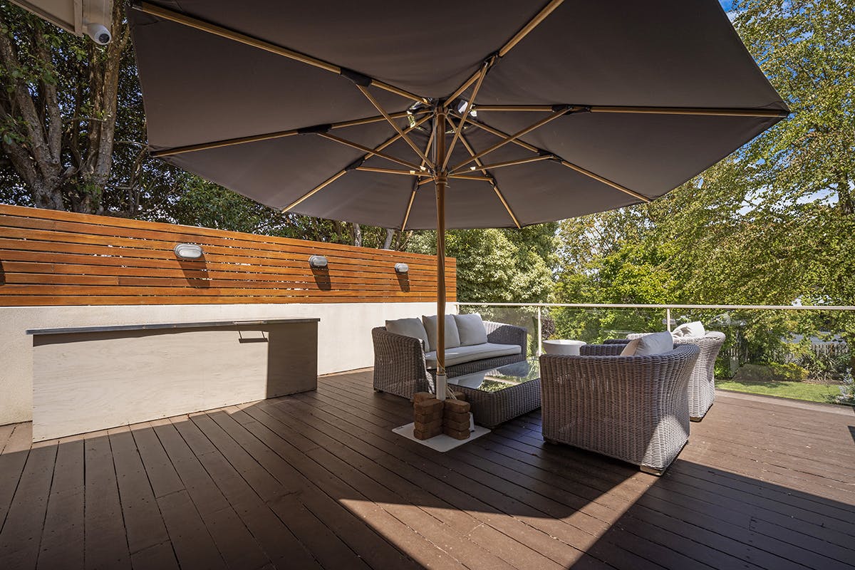 Outdoor living is a standout feature of this home. The family room opens onto a spacious, elevated alfresco area, perfectly private and ideal for outdoor entertaining and combines indoor and outdoor seamlessly. A timber deck stretches the full rear aspect of the home, leading down to a charming, paved courtyard protected by mature trees and greenery. A fully automated watering system ensures the gardens and lawns remain lush and vibrant all year round.