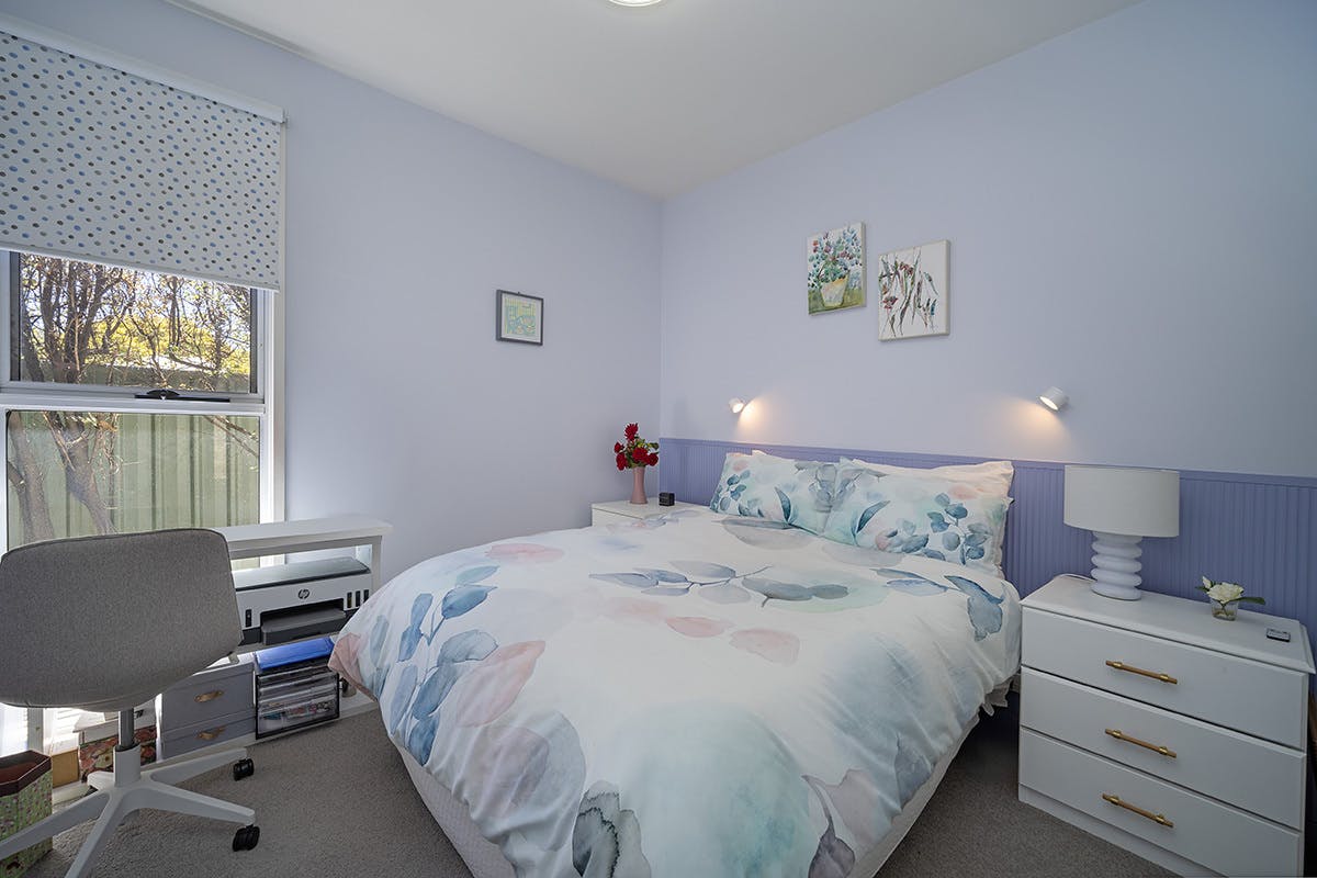 Comfort is assured year-round with a split system providing heating and cooling. Additional features a garden shed, native plantings, low-maintenance garden beds, and off-street parking.